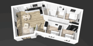 Pièce de vie avec cuisine ouverte de 49.77 m²