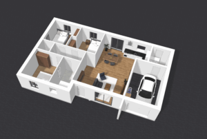 Grande pièce de vie avec cuisine ouverte de 42 m²